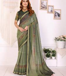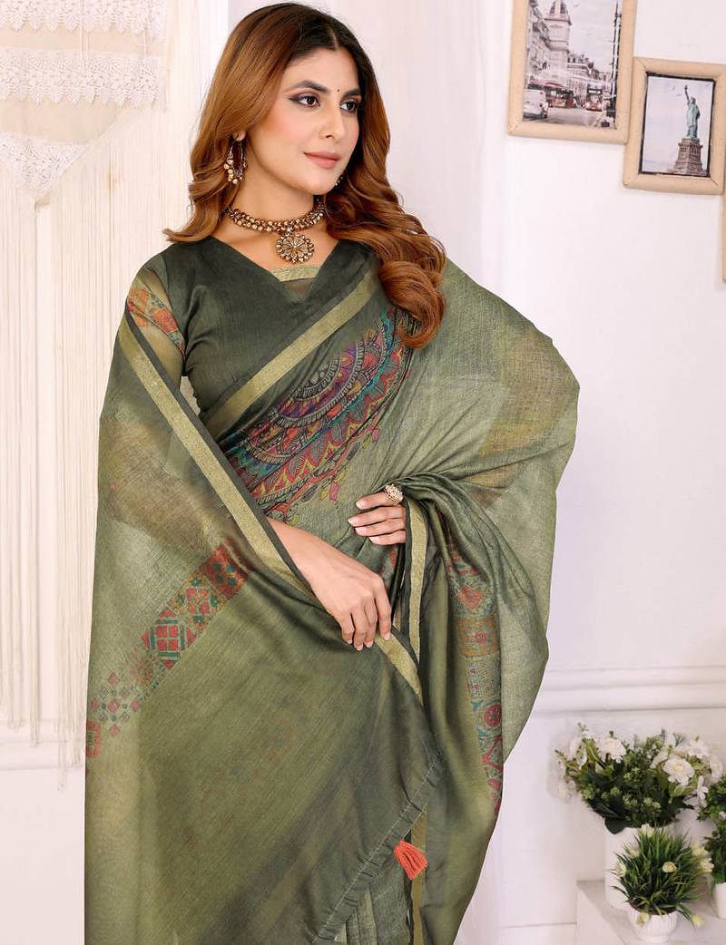 Mehendi printed art silk designer pallu saree