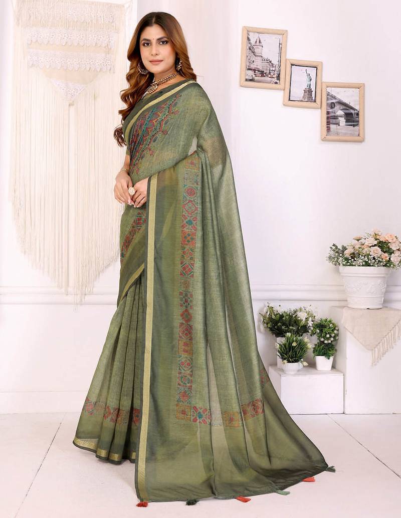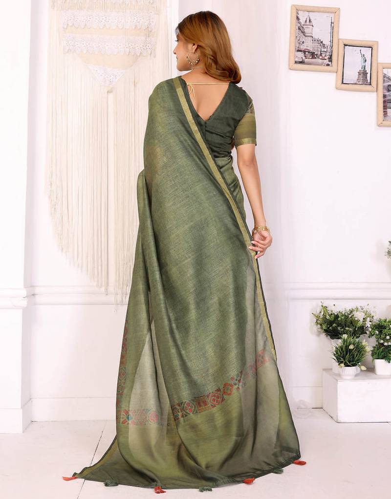 | • | Saree | : | Color- Mehendi / Fabric- Art Silk |