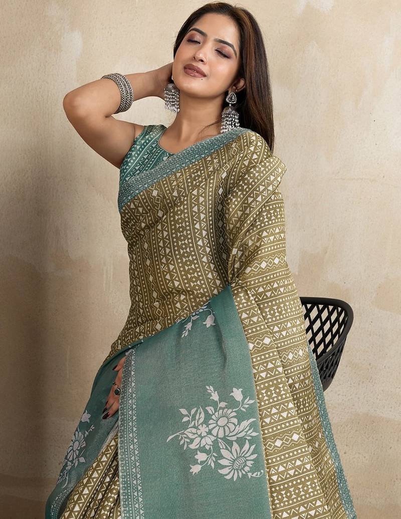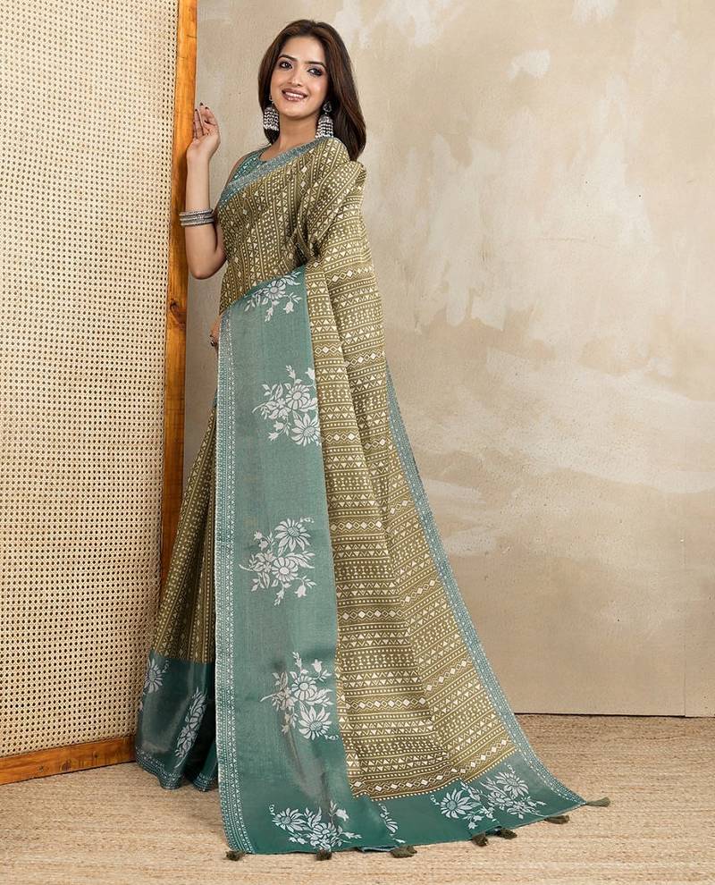 | • | Saree | : | Color- Mehendi / Fabric- Art Silk |