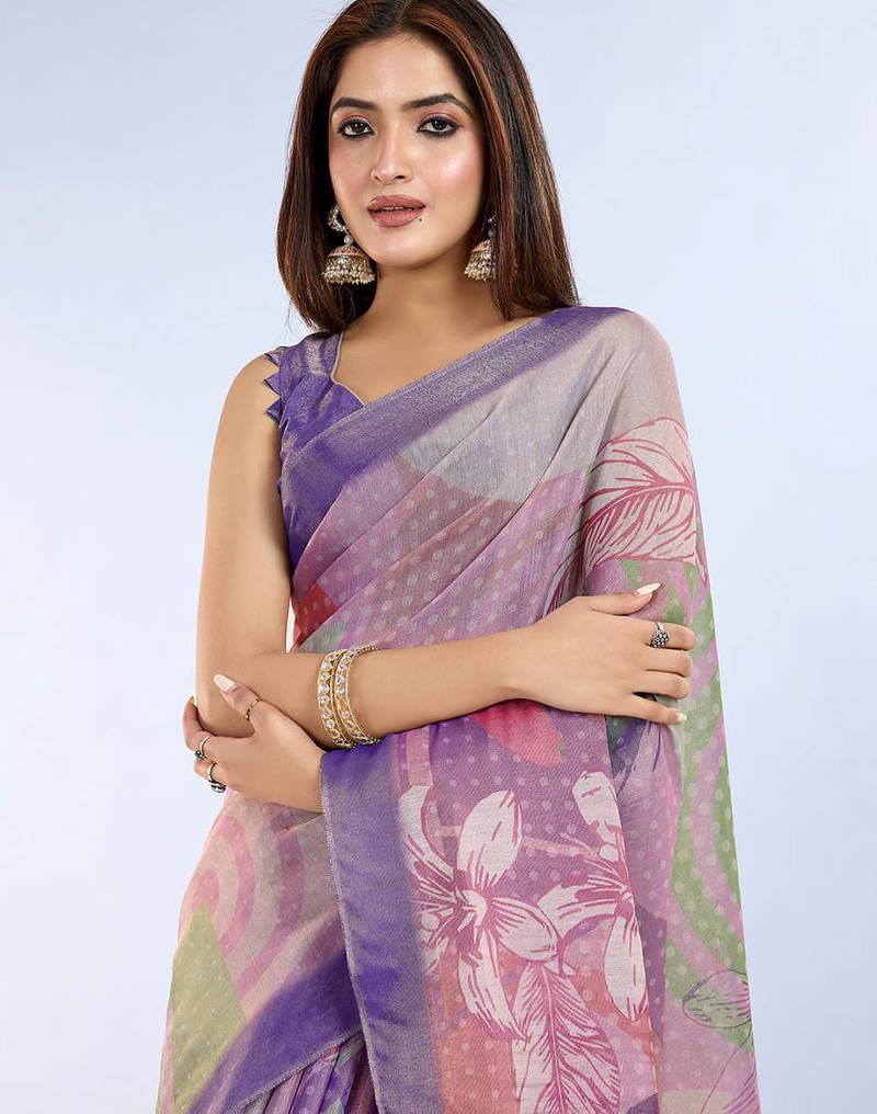 Multicolor printed art silk designer pallu saree