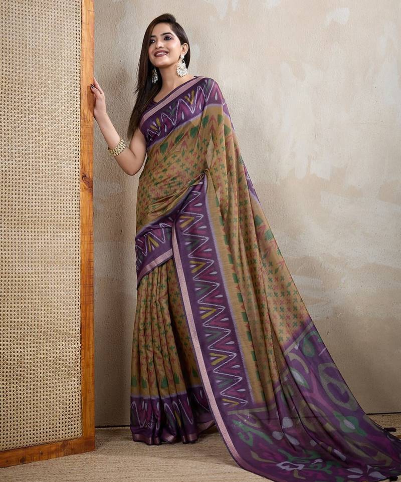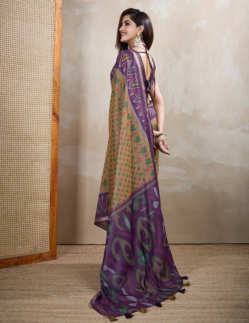 Mustard printed art silk designer pallu saree