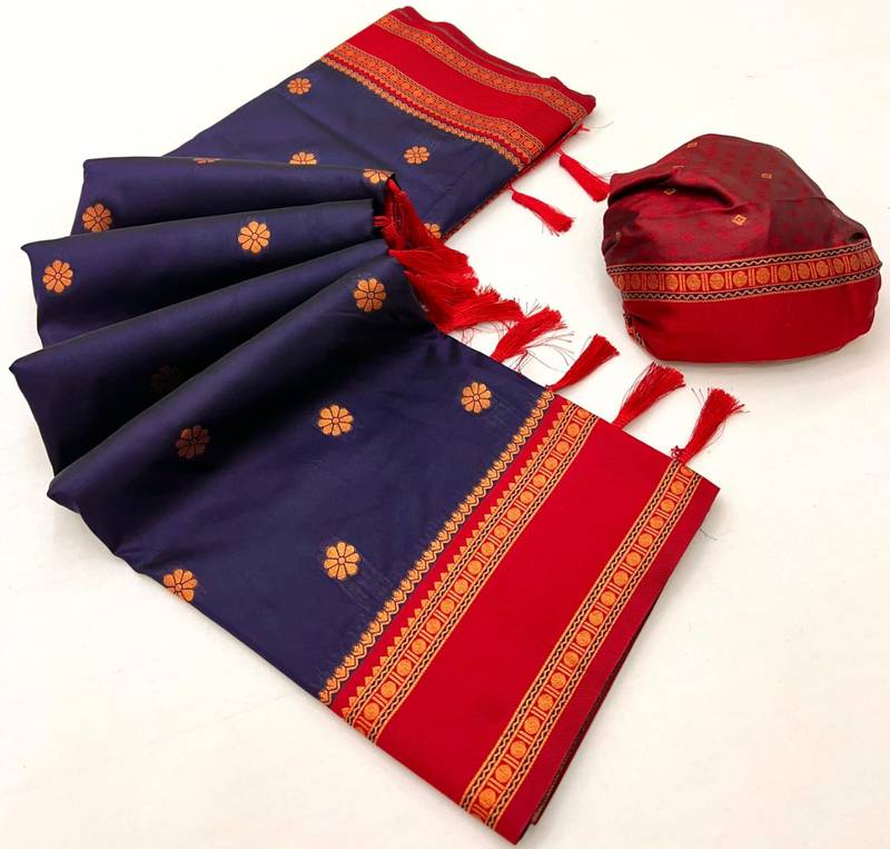 | Product Name | Navy Blue Soft Silk Saree With Dual Zari Motifs, Narayan Border & Contrast Pallu | |