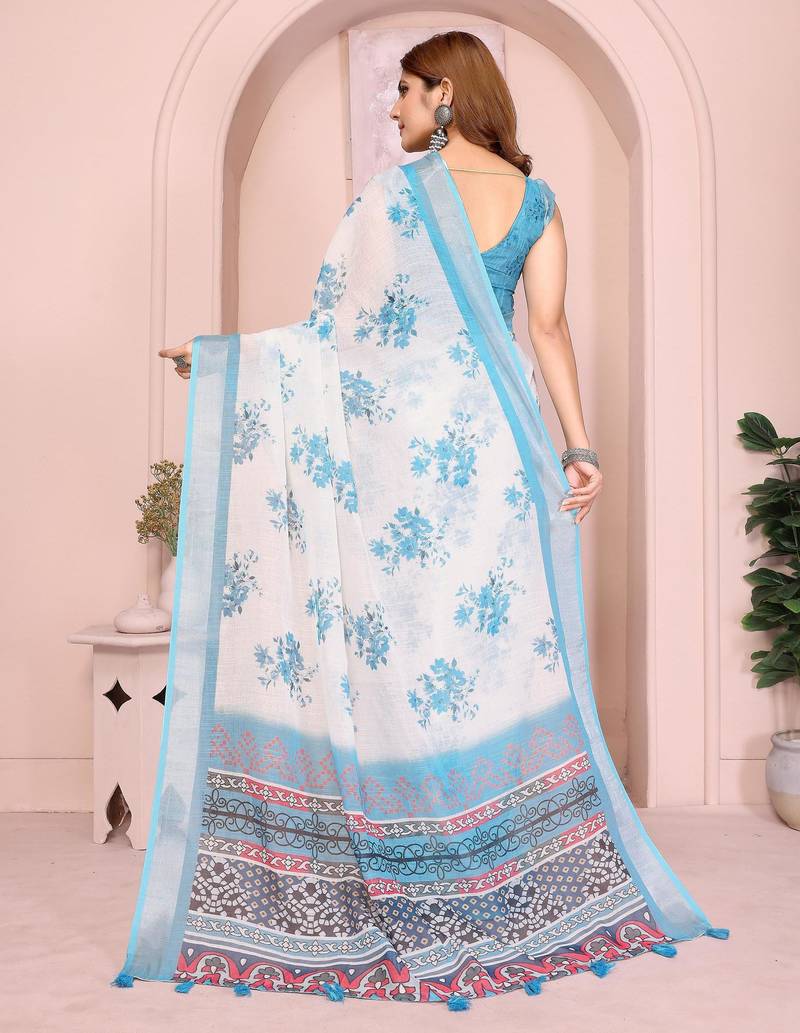 Product Name | Off White Printed Designer Pallu Linen Saree | |