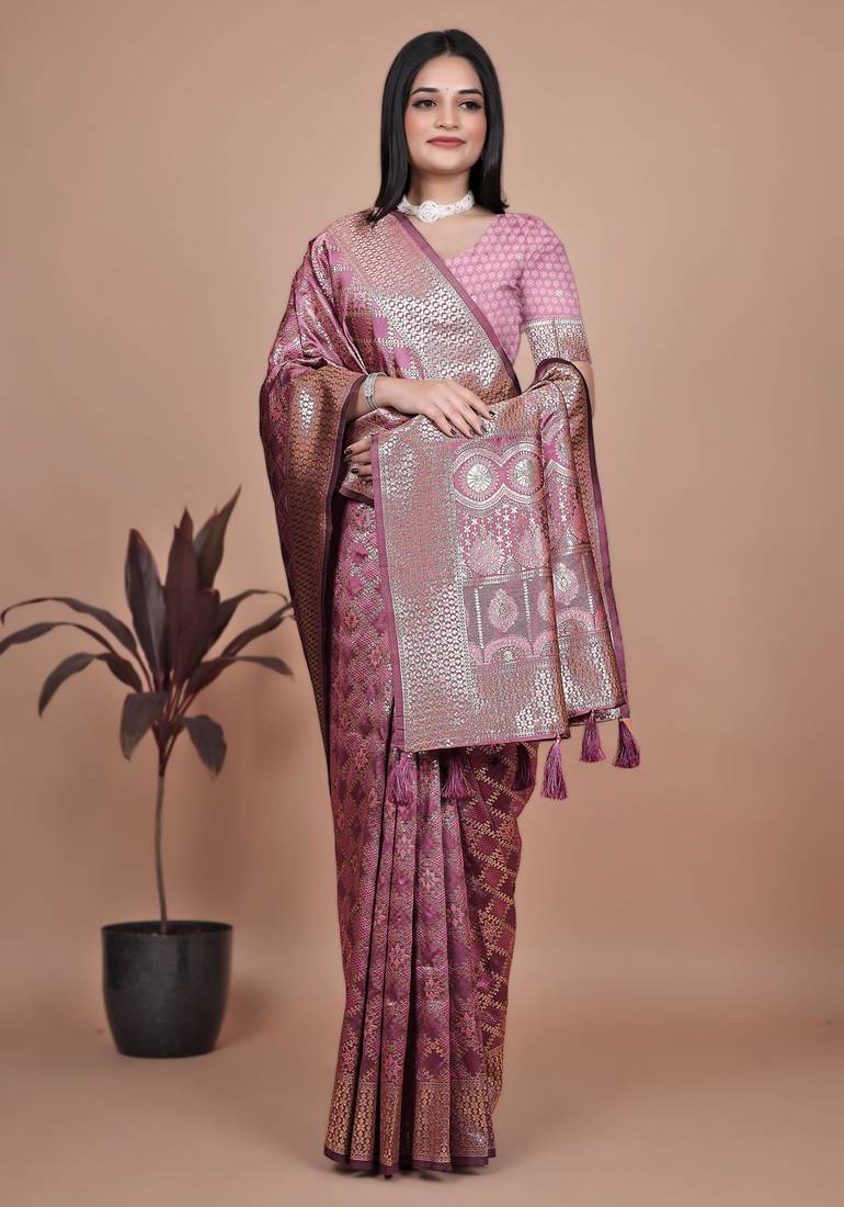 Product Name Onion Pink Woven Designer Pallu Banarasi Art Silk Saree