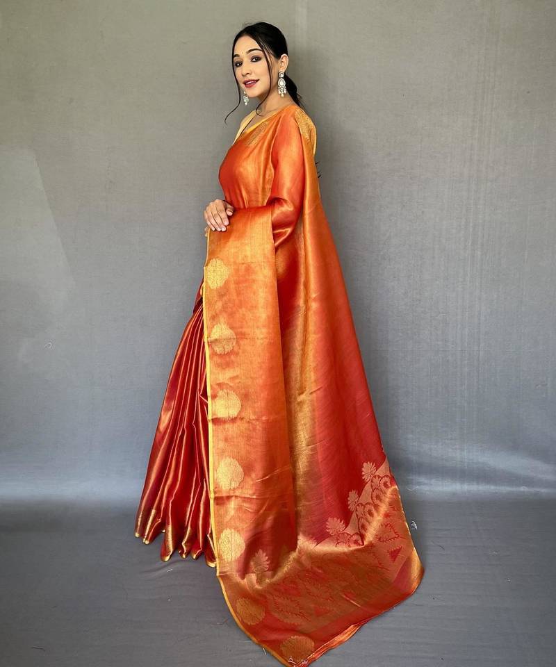 | • | Saree | : | Color- Orange / Fabric- Art Silk |