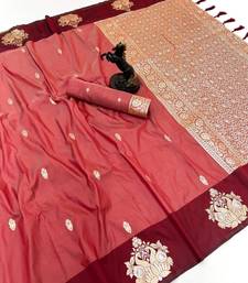 Orange soft silk saree with zari weaving & rajhans motifs