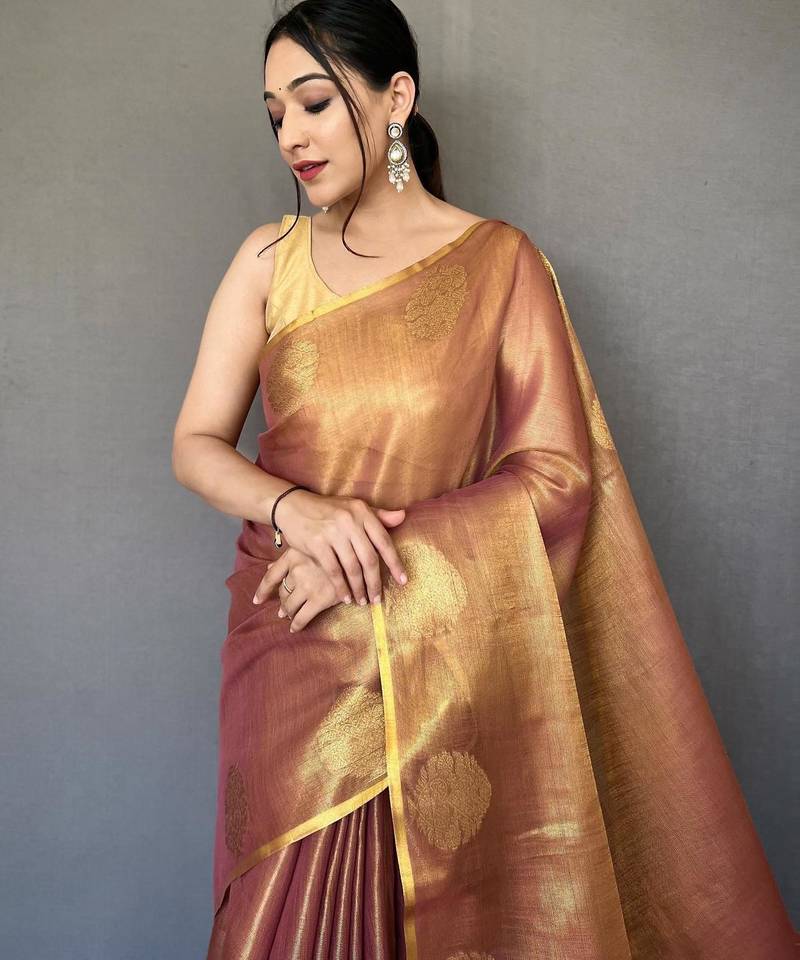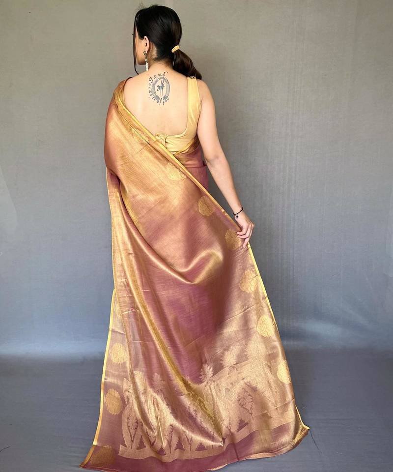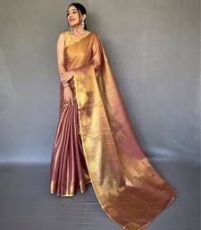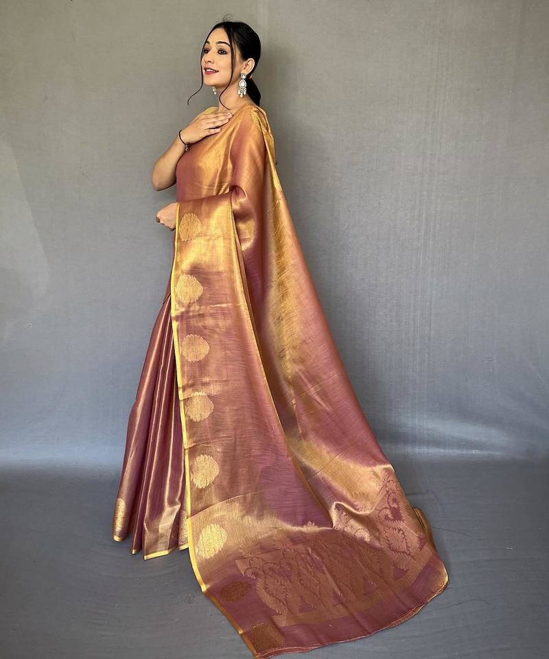 Peach art silk woven saree