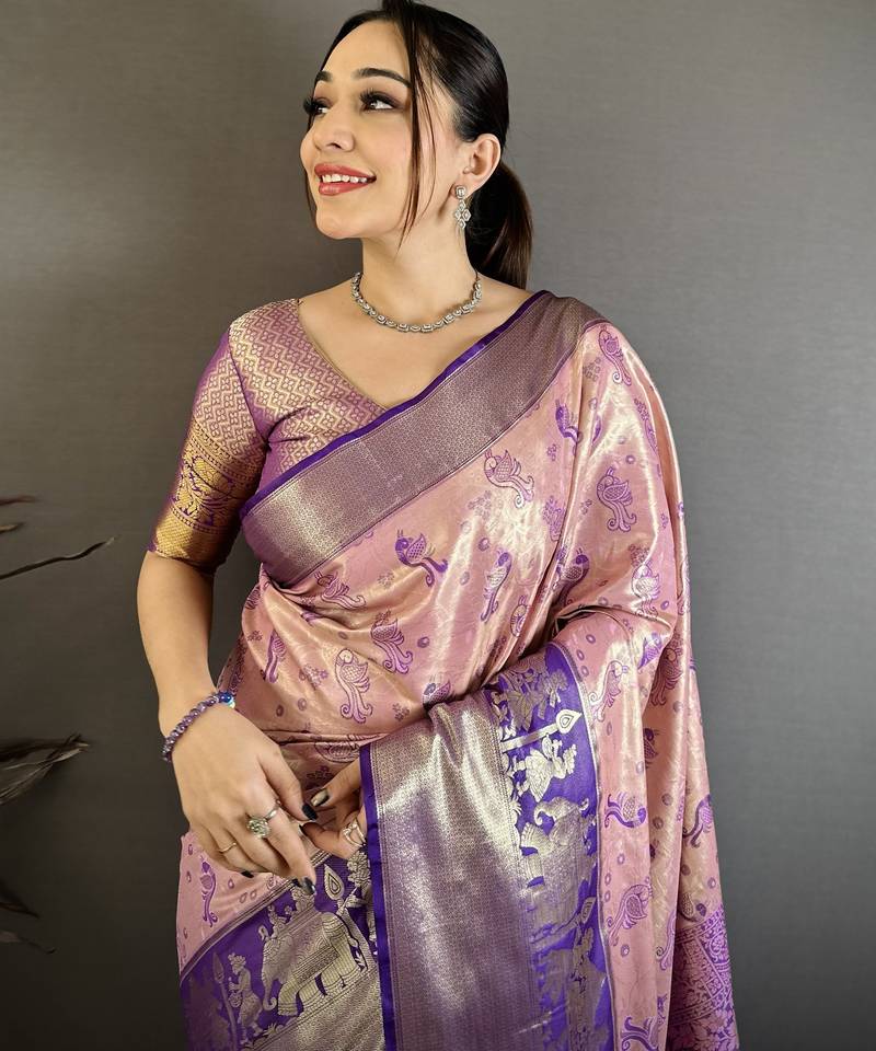 Light baby pink art silk woven art-silk-sarees