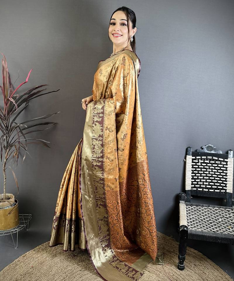 Peach art silk woven art-silk-sarees