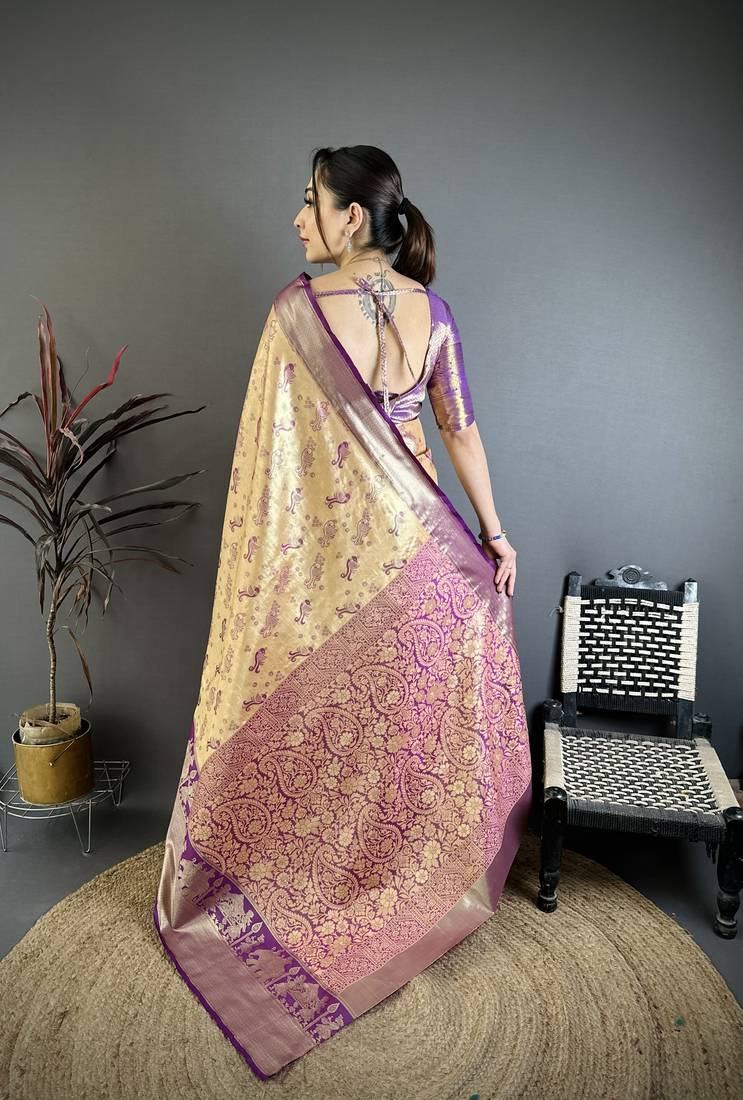 Golden art silk woven art-silk-sarees