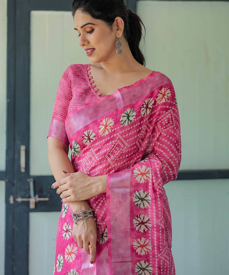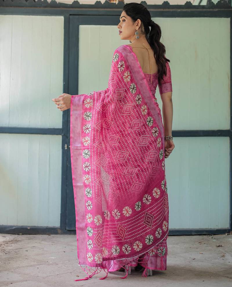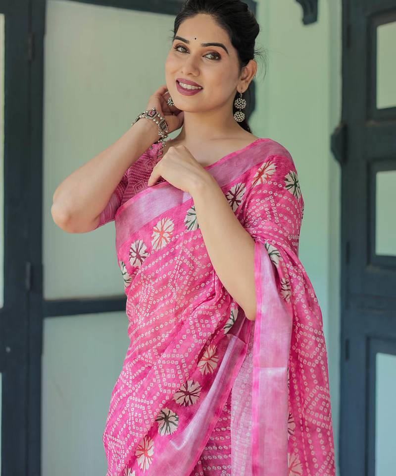 | Product Name | Pink Printed Art Silk Designer Pallu Saree | |