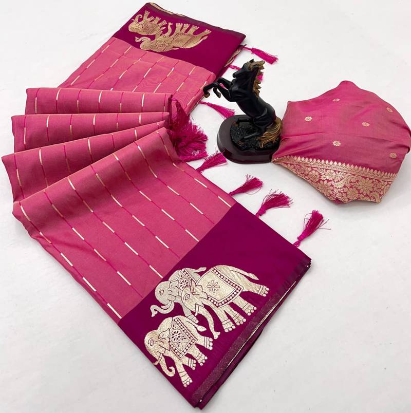 Product Name Pink Soft Silk Saree With Zari Weaving & Elephant Motifs