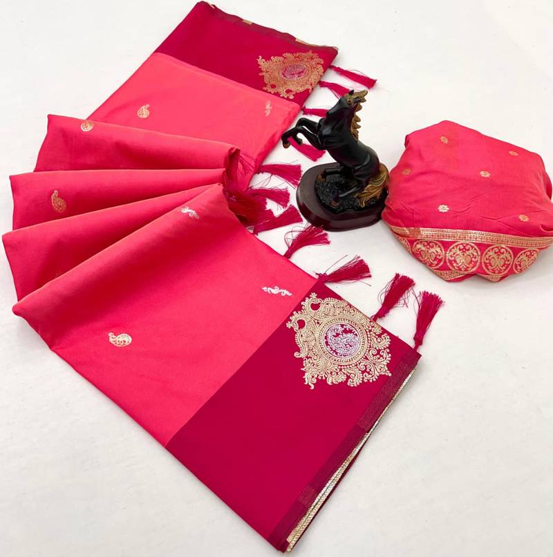 | Product Name | Pink Soft Silk Saree With Zari Weaving & Floral Motifs | |