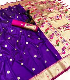 | Product Name | Purple Soft Silk Paithani Saree With Flora Zari Weaving & Muniya Border | |