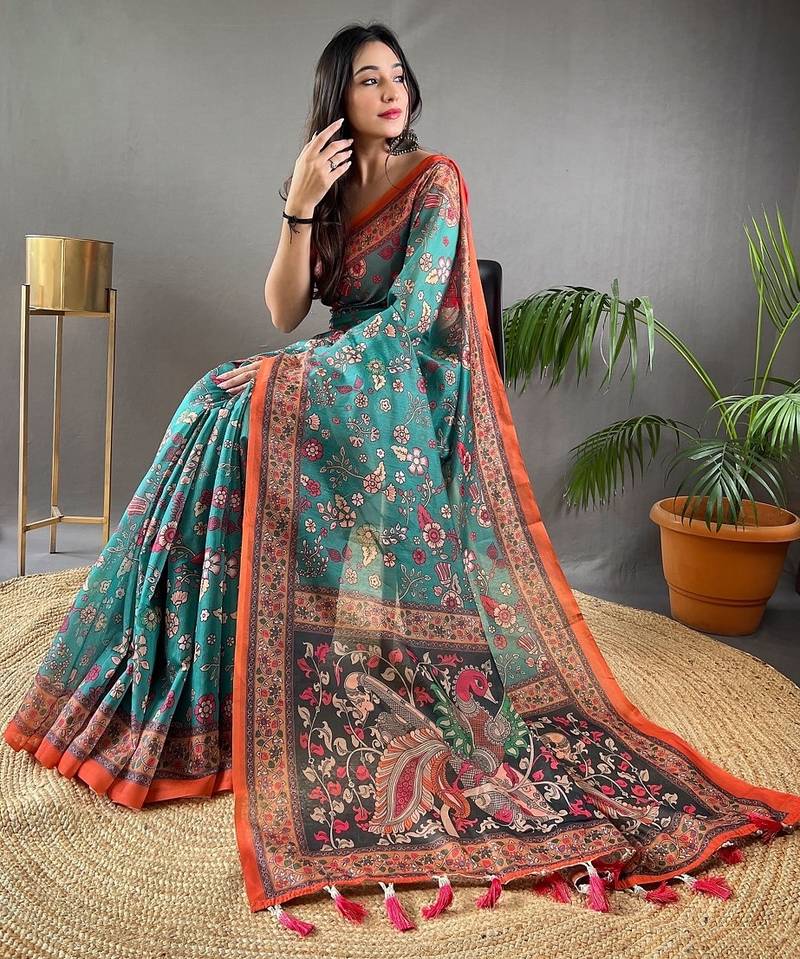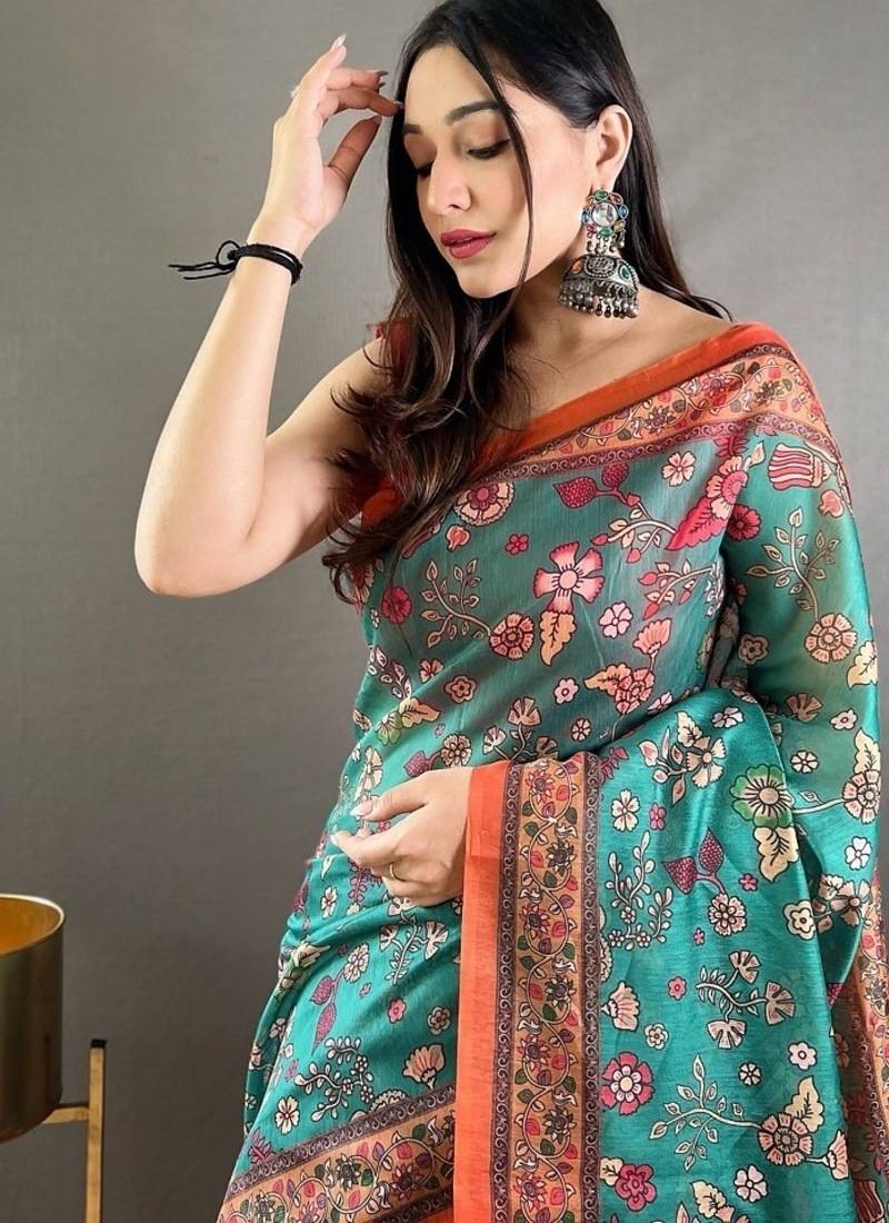 Rama green art silk woven saree