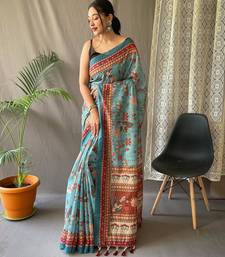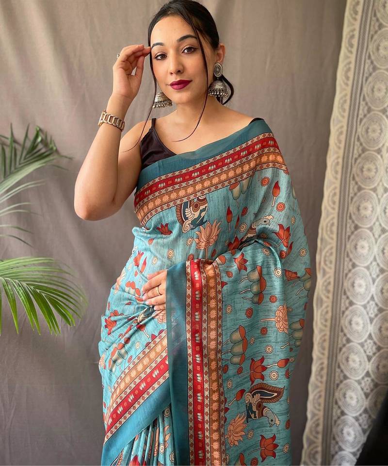 Rama green art silk woven saree
