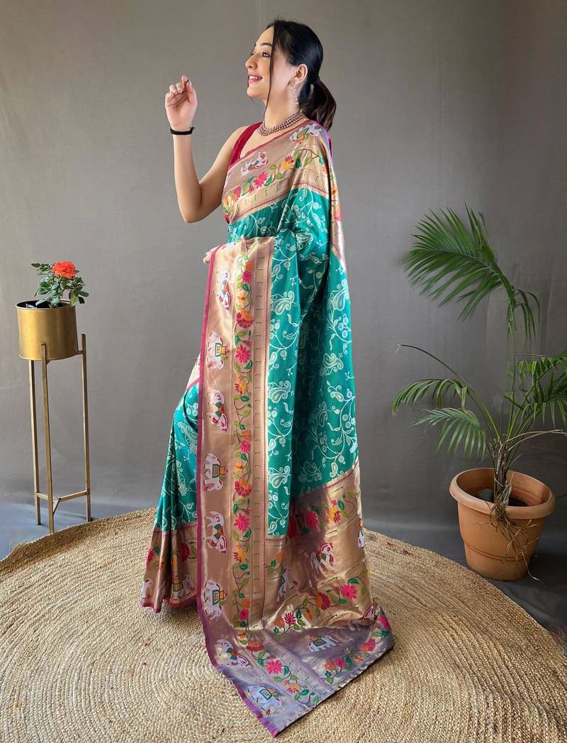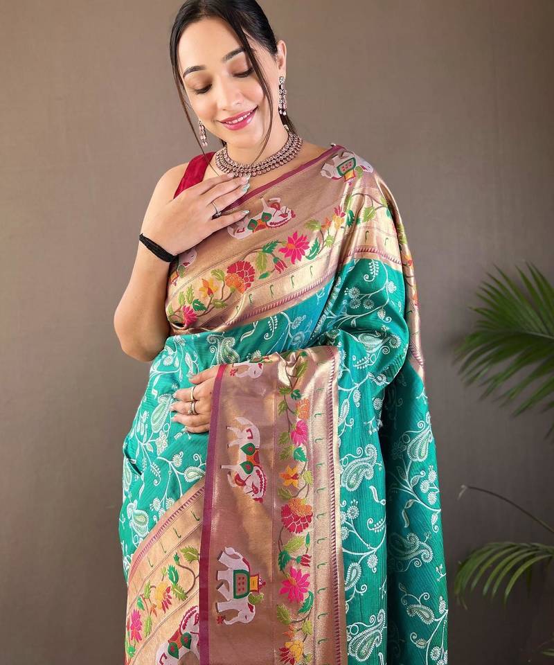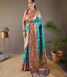 Rama green art silk woven saree