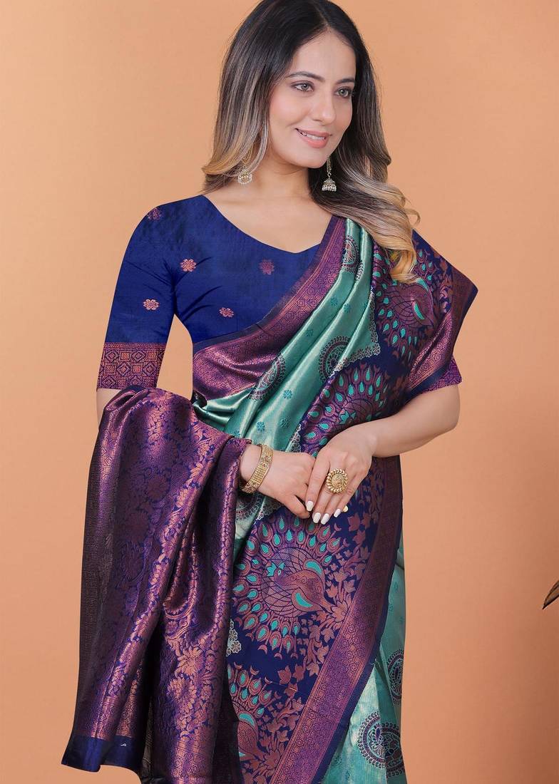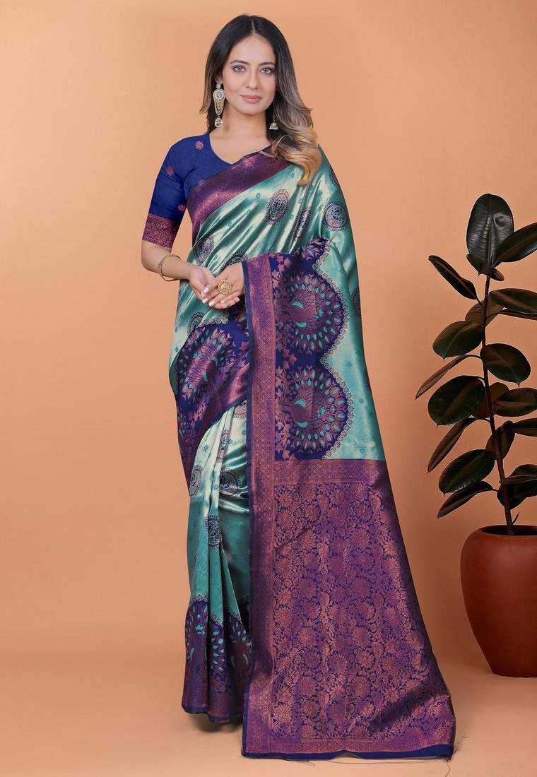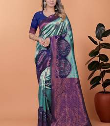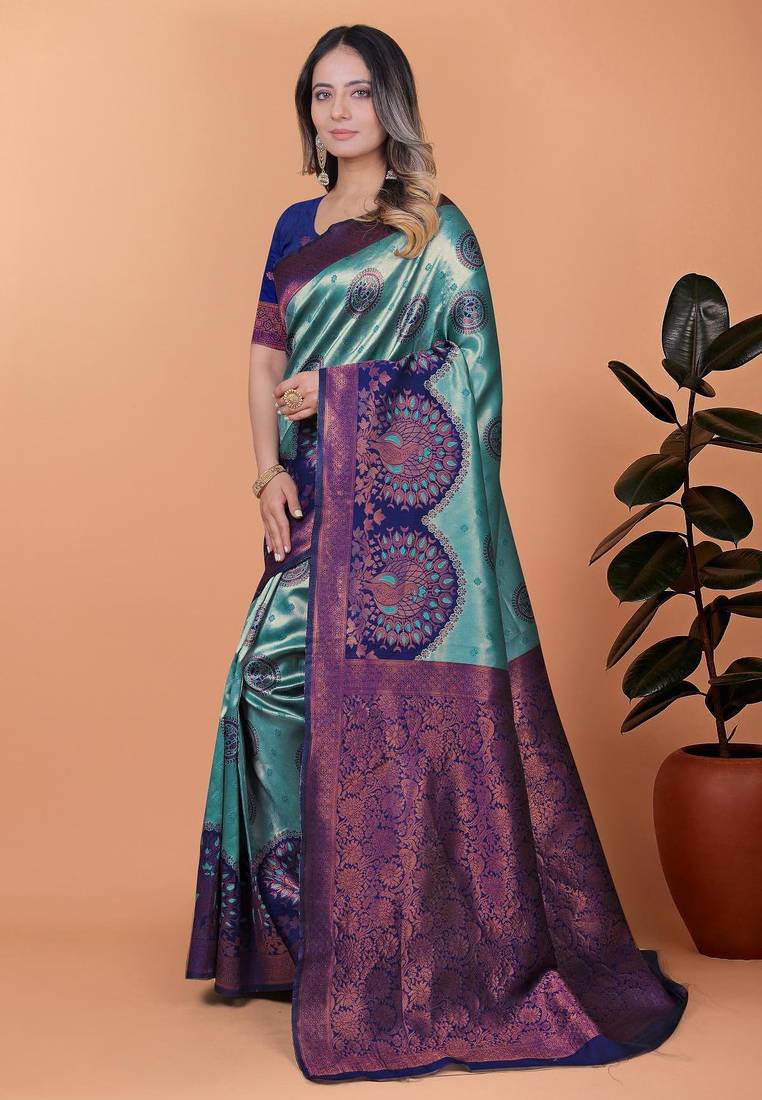 Rama green woven designer pallu banarasi art silk saree