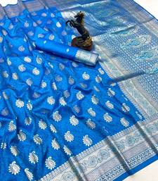 Sky blue banarasi silk saree with zari embossed mango design & rich pallu