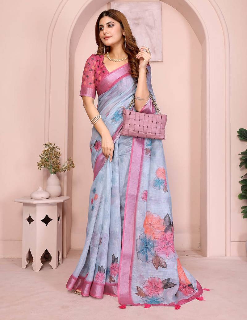 | Product Name | Sky Blue Printed Art Silk Designer Pallu Saree | |