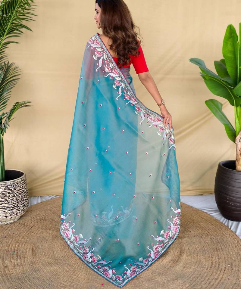 | • | Saree | : | Color- Teal / Fabric- Art Silk |