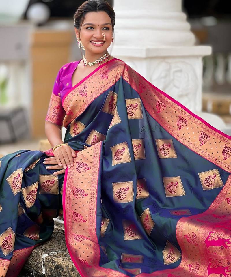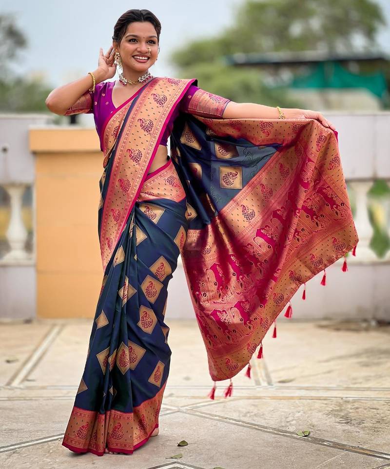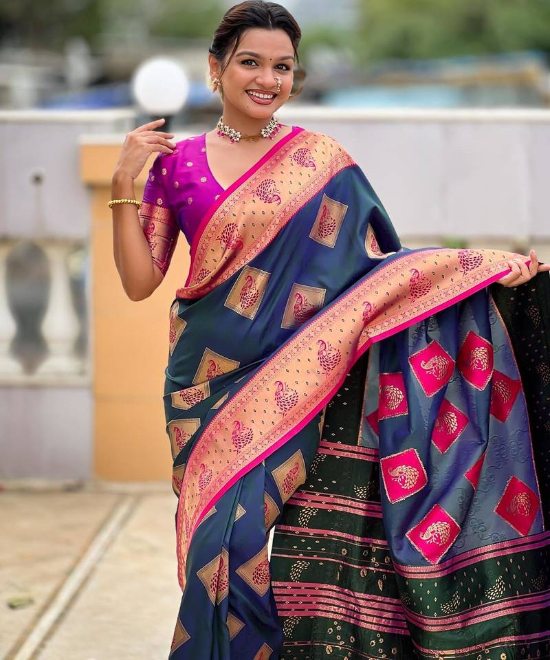 | Product Name | Teal Elegant Art Silk Woven Saree With Rich Zari Border | |