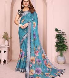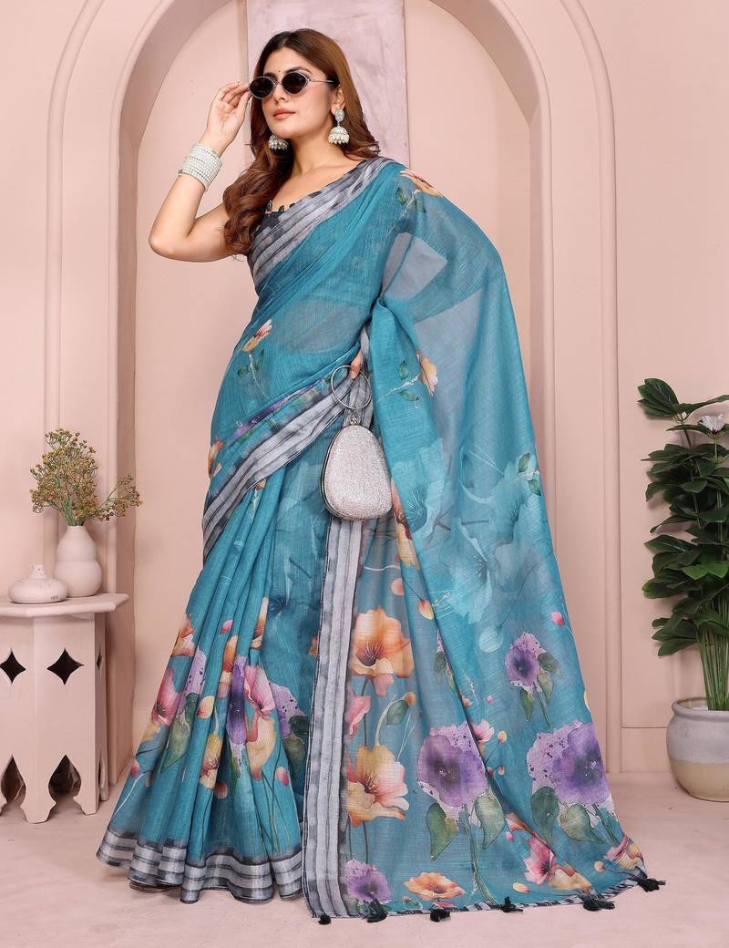 Product Name | Teal Printed Designer Pallu Linen Saree | |