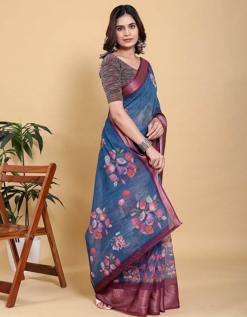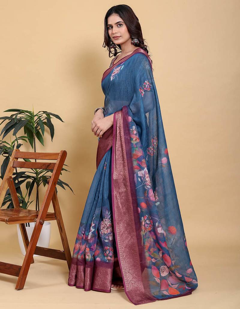 | Product Name | Teal Printed Art Silk Designer Pallu Saree | |