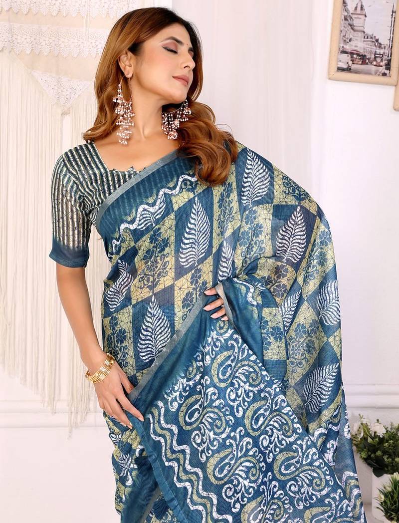 | Product Name | Teal Printed Art Silk Designer Pallu Saree | |