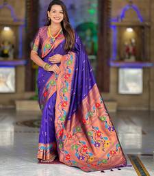 Violet elegant art silk woven saree with rich zari border