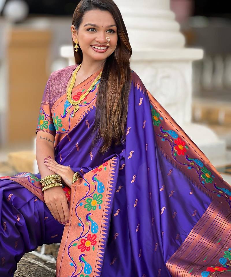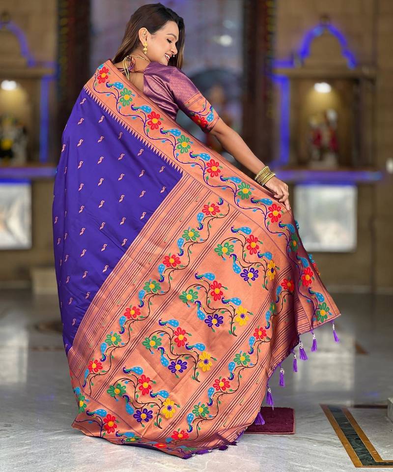 | Product Description | Soft Paithani Silk Saree With Zari Weawing Meenakari Motifs Design And Meenakari Weawing Rich Pallu With Meenakari Weawing Border & Tassels Attached At Pallu End. Blouse : Enrich Silk Weawing Contrast Blouse Piece With Sleeve Border , |