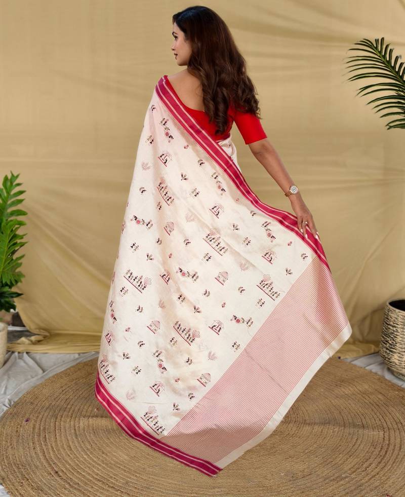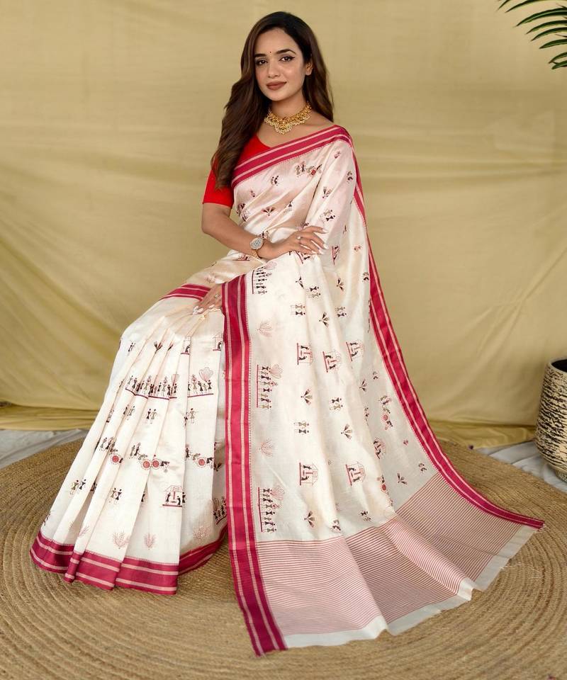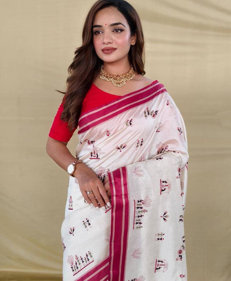 White art silk woven saree
