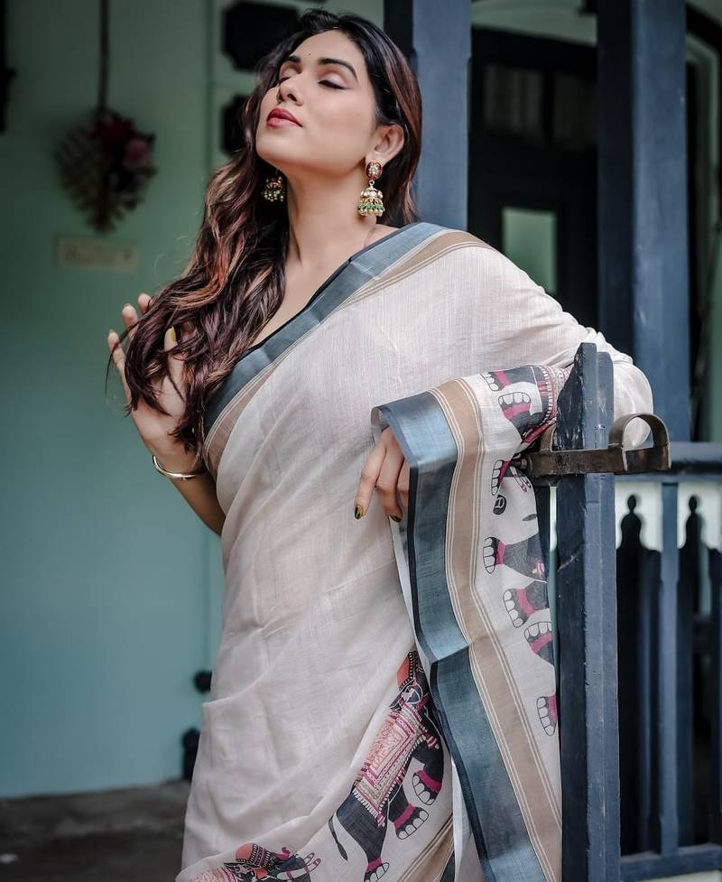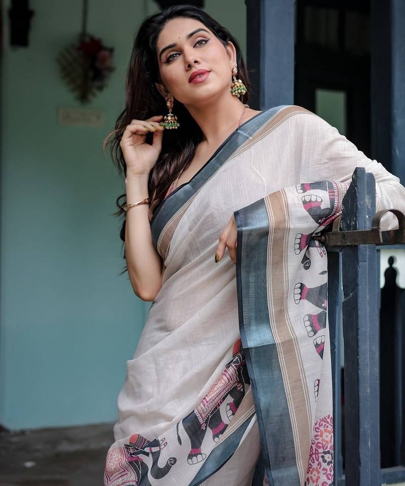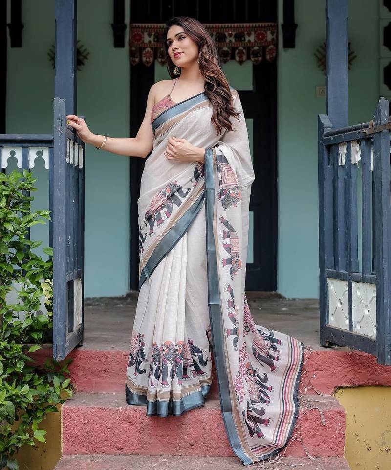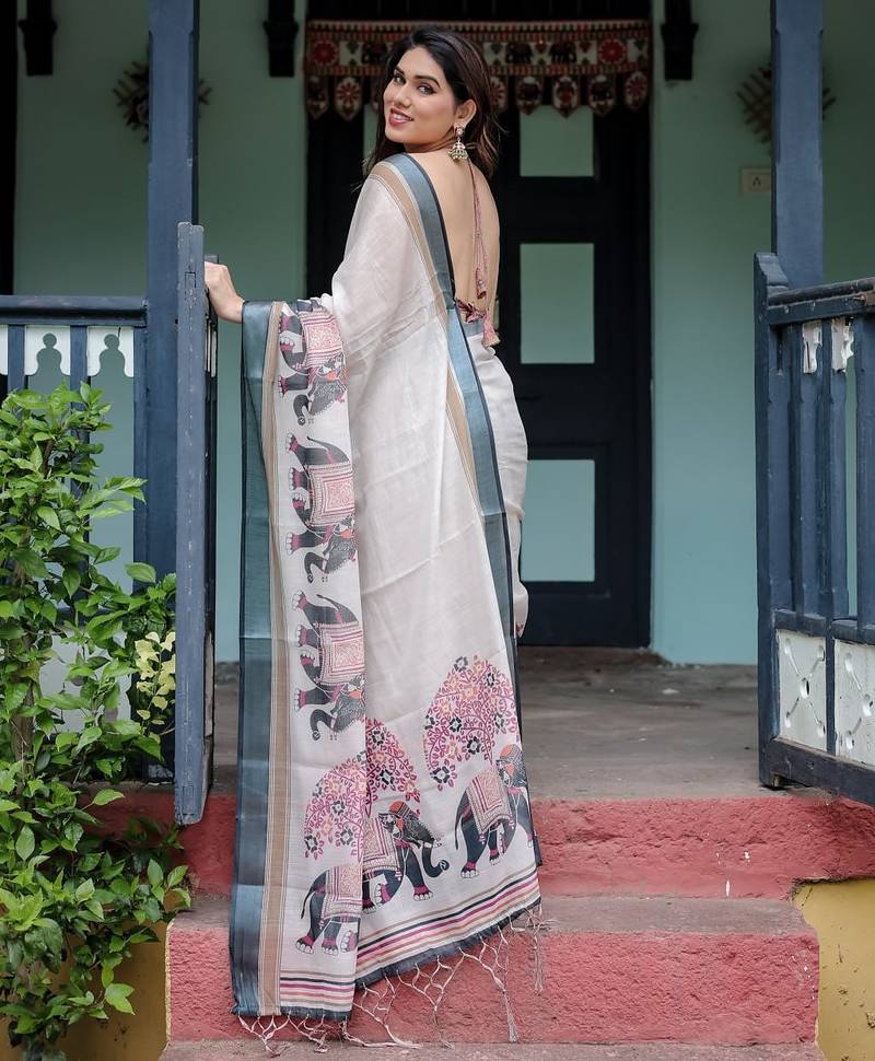 | Product Name | White Printed Art Silk Designer Pallu Saree | |