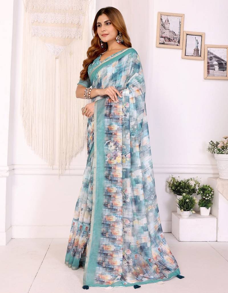 | Product Name | White Printed Art Silk Designer Pallu Saree | |