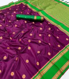 Wine soft silk saree with dual zari motifs, narayan border & contrast pallu