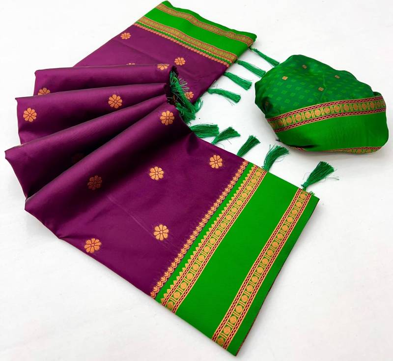 | Product Name | Wine Soft Silk Saree With Dual Zari Motifs, Narayan Border & Contrast Pallu | |