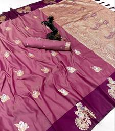 Wine soft silk saree with zari weaving & peacock motifs