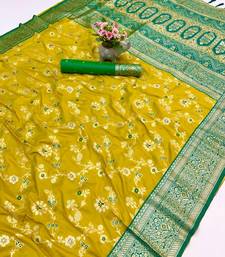 Yellow banarasi antique silk saree with silver zari weaving