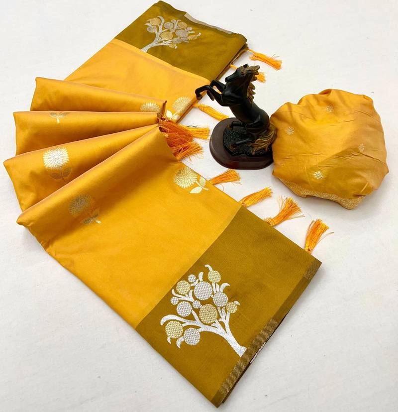 | Product Name | Yellow Soft Silk Saree With Zari Weaving & Floral Motifs | |