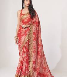 | Product Name | Red Organza Saree With Sequins Embroidery & Floral Digital Print | |