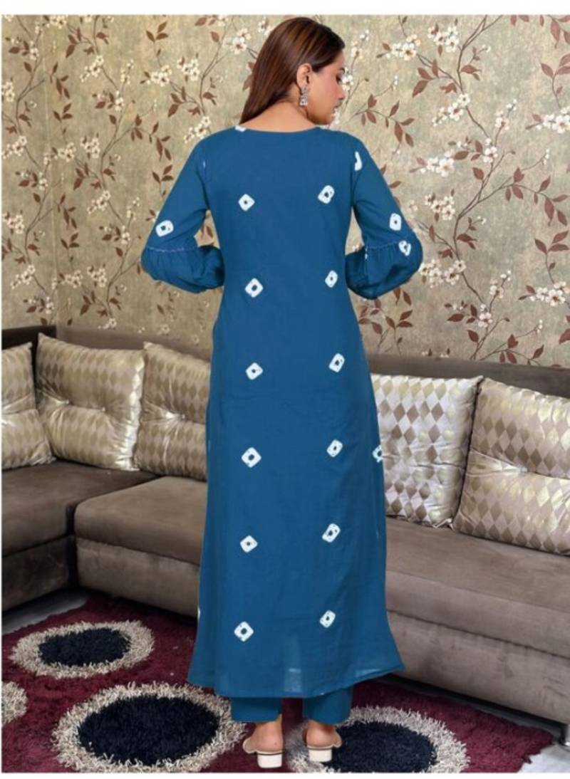 | Product Description | Elevate Your Ethnic Wardrobe With This Stunning Teal Blue Bandhani Print A Line Kurta Set. Crafted For Those Who Appreciate A Blend Of Traditional Artistry And Modern Silhouettes, This Outfit Is Perfect For Festive Gatherings, Office Wear, Or Casual Outings. |