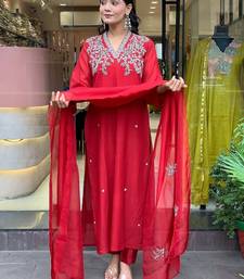 | Product Description | Women's Embroidered Chanderi V Neck Kurta With Pant & Duppata ## Colour : Red Size : S , M , L , Xl , Xxl Product Details : @ Kurti Stitched @ @ Kurti Material: Chanderi @ Kurti Length: 45 Inch @ Work: Embroidered @ Kurti Bust Size : Max Up To 44" @ Bottom Stitched @ @ Bottom Fabric :Chanderi @ Bottom Waist Size : Max Up To 38" @ Bottom Length : 37" To 38" @ Dupatta Stitched @ @ Dupatta Fabric : Chanderi @ Dupatta Pattern: Embroidered @ Dupatta Length : 2.20 M @ Kurti Inner Half Inner |