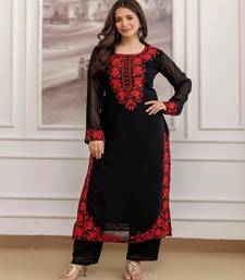 #Women's Embroidered Straight Georgette Kurta And Pant With Dupatta Set # Colour:Black Size : S , M , L , Xl , Xxl Product Details : @ Kurti Stitched @ @ Kurti Material: Georgette (Fox) @ Kurti Length: 48 Inch @ Work: Embroidery @ Kurti Bust Size : Max Up To 44" @ Sleeve Length : Three Quarter Sleeves @ Bottom Stitched @ @ Bottom Fabric : Georgette (Fox) @ Bottom Waist Size : Max Up To 38" @ Bottom Length : 37" To 38" @ Bottom Type : Pant @ Dupatta Stitched @ @ Dupatta Fabric : Georgette (Fox) @ Dupatta Length : 2.20 M @ Work : Lace @ Kurti Style A Line @ Set Type : Kurta With Dupatta And Bottomwear @ Kurta And Bottom Full Inner @