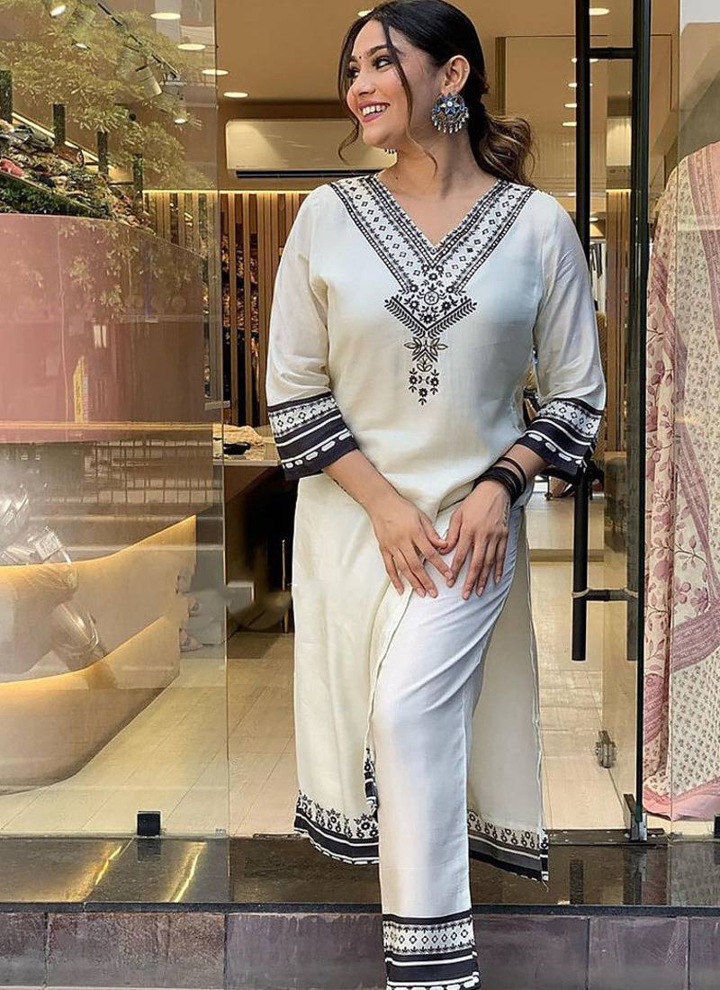 | Product Name | White Color Viscose Rayon Printed Sttiched Suit Details | |