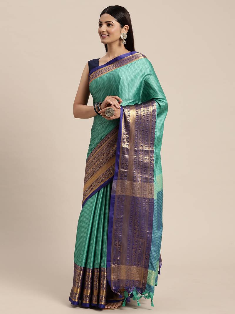 | Product Name | Turquoise Woven Cotton Silk Saree With Blouse | |