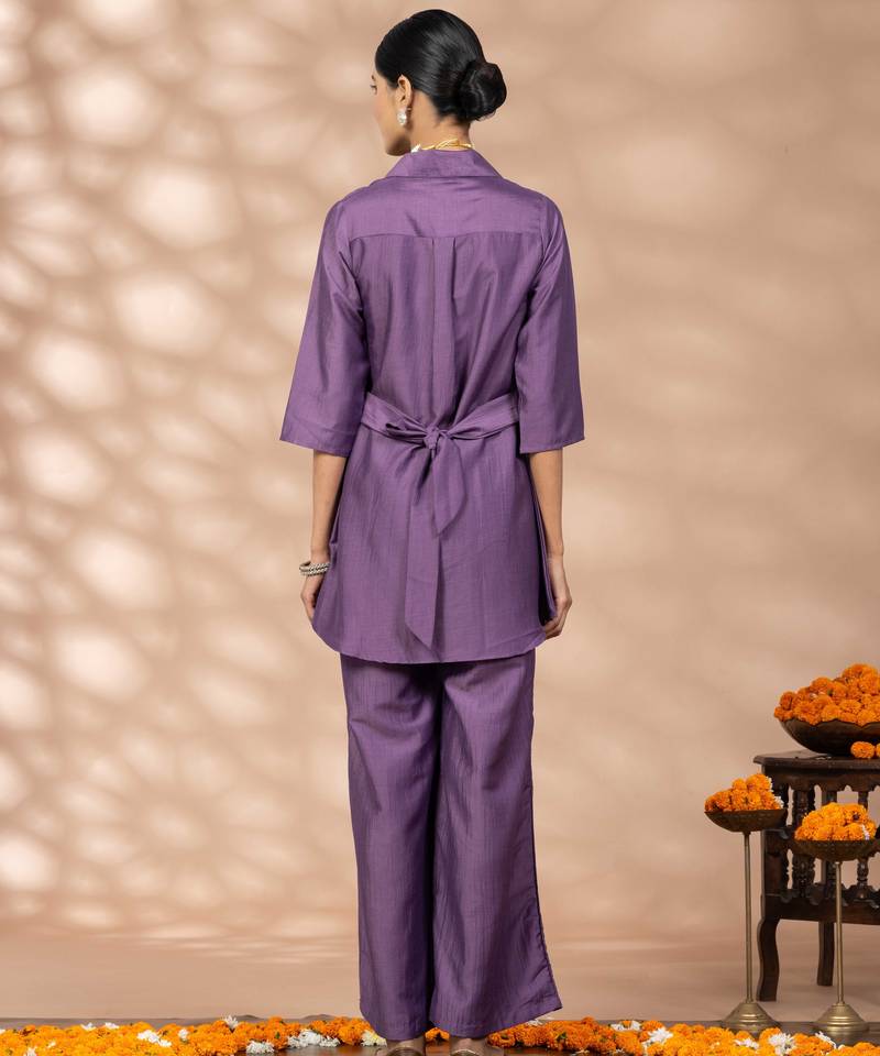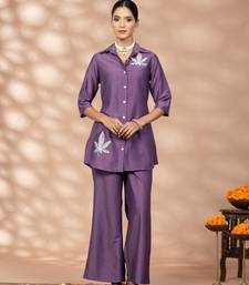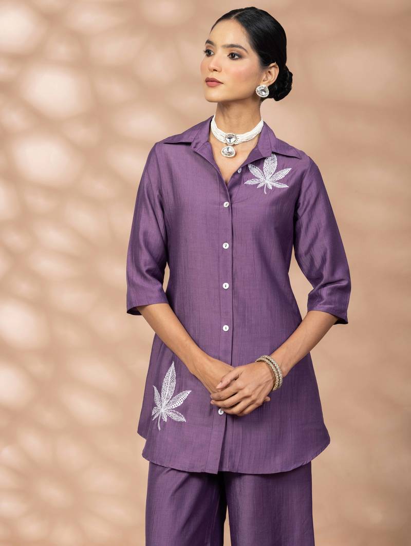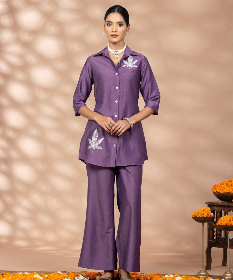 Product Name | Women Solid Purple Leaf Embroidery Co Ord Set | |