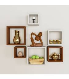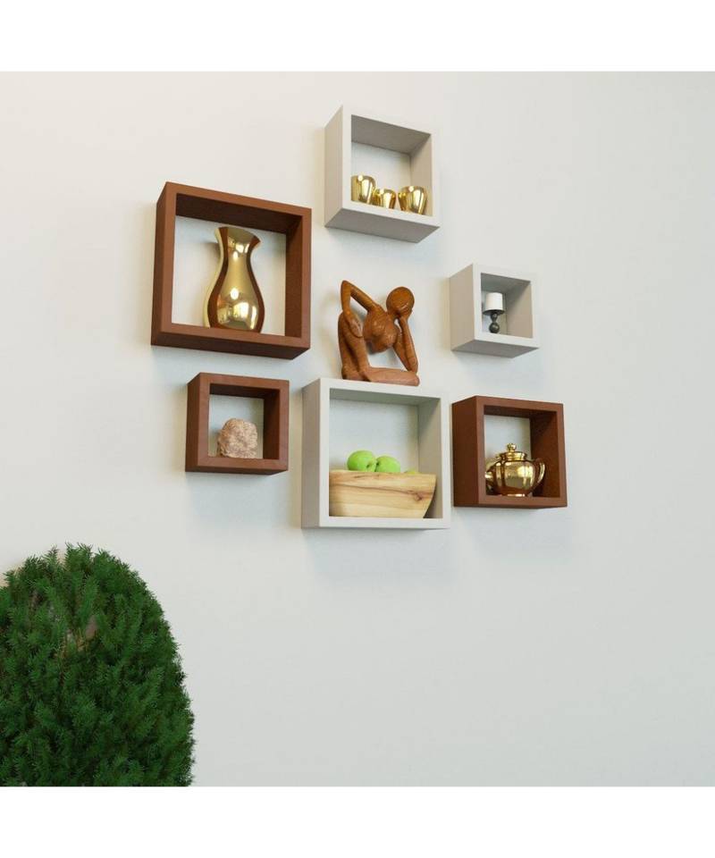 Multicolor mdf wall shelves nesting square shape set of 6 wall racks shelves ?brown::White
