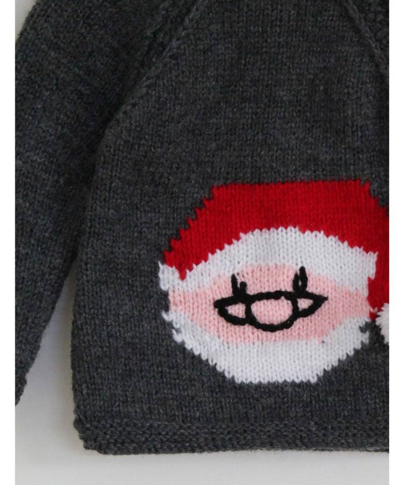 Woonie full sleeves santa knit detailing handmade sweater - grey