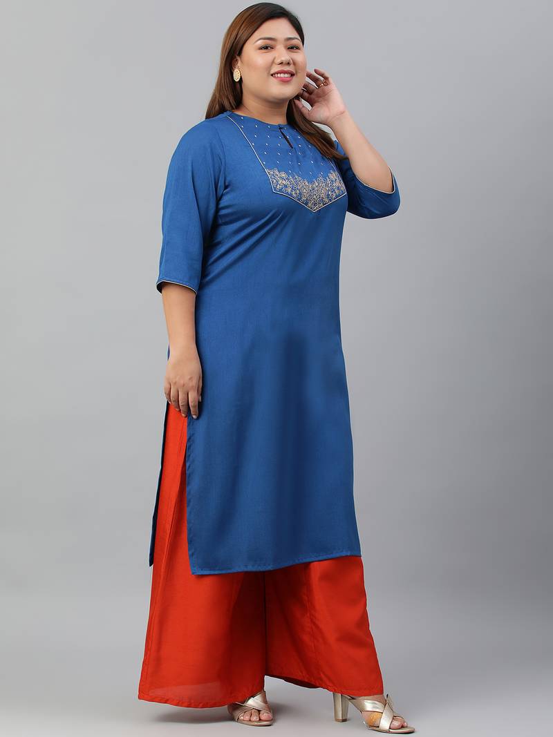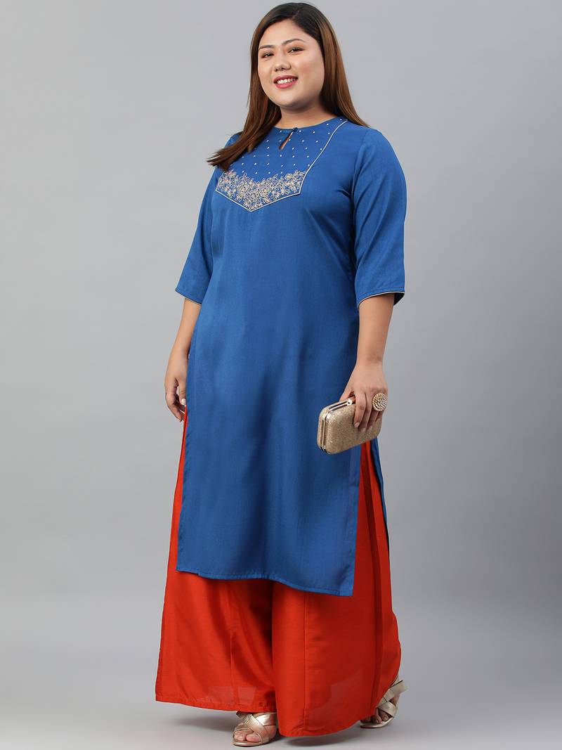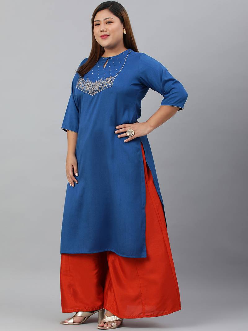 | Product Description | Cruise Through The World Of Fashion By Wearing This Blue 3/4th Sleeve Kurta From Janasya. This Poly Silk Kurta Has Embroidery On Yoke With Keyhole Neckline. The Elegant Straight Style Makes It A Captivating Choice. Style This With Palazzo Or Pants With Pumps To Look Trendy. |