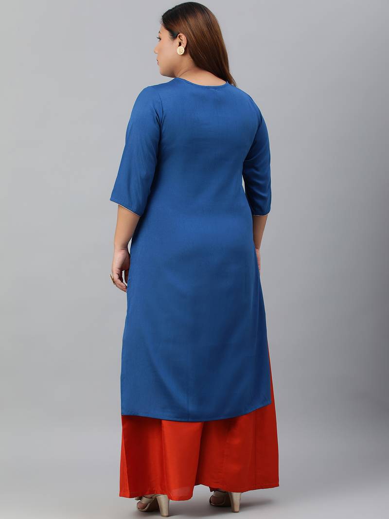 | Product Name | Xl Love By Janasya Blue Embroidered Silk Ethnic Kurtis | |